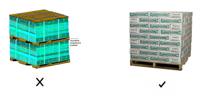 - Pallets should be no more than 1.6m high (including pallet) Fig 2